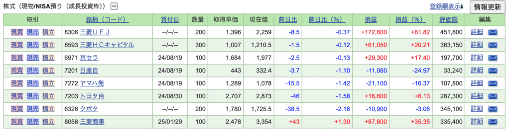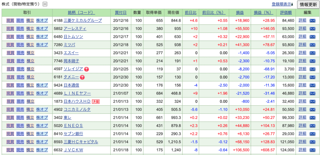 特定口座(課税口座)で保有している銘柄の一部を紹介します。