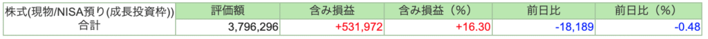 2025年8月の新ニーサ (NISA)の成長投資枠の運用成績は+531,972円でした。