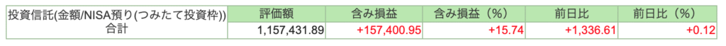 積み立て投資枠の運用成績は、+157,400円でした。先月よ17,472円のプラスでした。