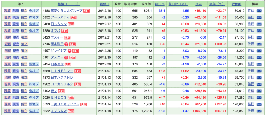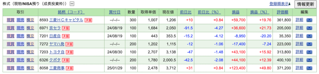 特定口座(課税口座)で保有している銘柄の一部を紹介します。