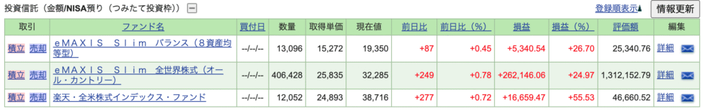 積み立て投資枠は毎月オルカンを5万円積み立てています。
