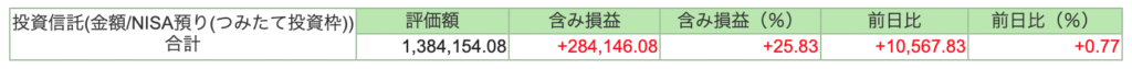 積み立て投資枠の運用成績は、+284,146円でした。先月よ81,793円のプラスでした。