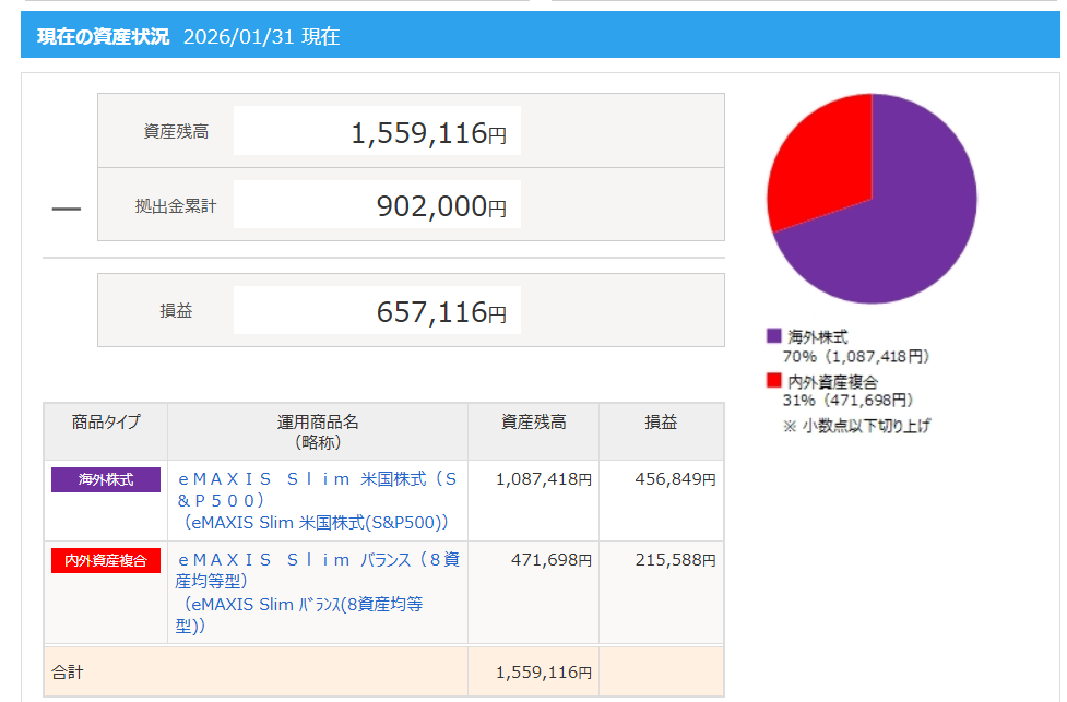 2026年1月の新NISA(ニーサ)積み立て投資枠の運用成績