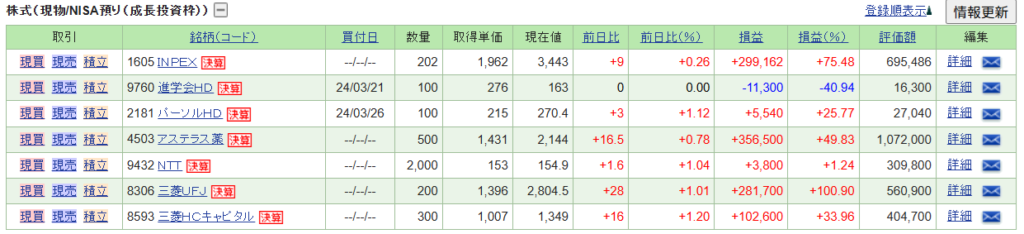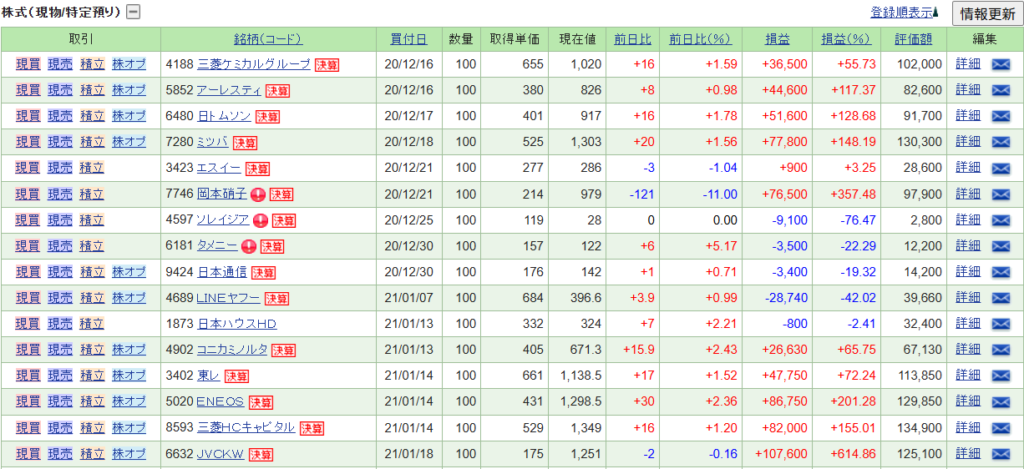 特定口座(課税口座)で保有している銘柄の一部を紹介します。