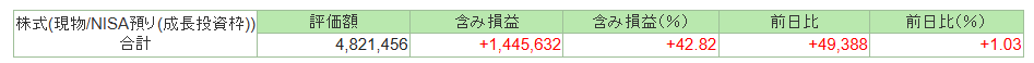 2026年1月の新ニーサ (NISA)の成長投資枠の運用成績は+1,445,632円でした。