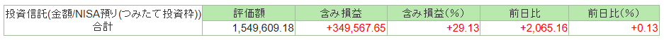 積み立て投資枠の運用成績は、+349,567円でした。先月よ13,135円のプラスでした。