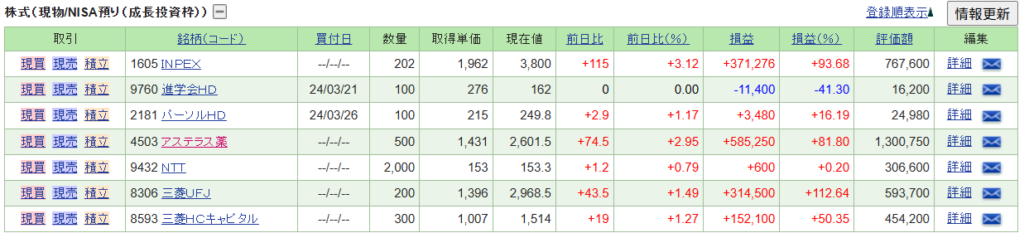 特定口座(課税口座)で保有している銘柄の一部を紹介します。