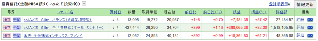 積み立て投資枠の運用成績は、+393,914円でした。先月よ44,347円のプラスでした。